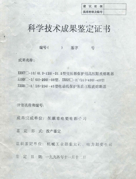撫順電瓷廠電瓷電器公司是原機(jī)械工業(yè)部定點(diǎn)生產(chǎn)高壓隔離開關(guān)、高壓熔斷器、絕緣子、避雷器的骨干企業(yè)之一。生產(chǎn)歷史悠久,技術(shù)力量雄厚,產(chǎn)品質(zhì)量可靠,產(chǎn)品遍及全國,遠(yuǎn)銷國處。具備高壓隔離開關(guān)、高壓熔斷器的設(shè)計、開發(fā)及批量生產(chǎn)的能力。擁有英國BRUSH公司具有國際先進(jìn)水平的高壓熔斷器制造技術(shù)和生產(chǎn)線關(guān)鍵設(shè)備,完備的檢測儀器。能夠批量生產(chǎn)符合國家和國際標(biāo)準(zhǔn)的3.6kv-40.5kv各種規(guī)格的戶內(nèi)外高壓隔離開關(guān)、高壓限流熔斷器系列產(chǎn)品。產(chǎn)品在國家高壓電器質(zhì)量監(jiān)督檢測中心通過全部型式并取得了兩部鑒定和型號證書,是國家經(jīng)貿(mào)委城農(nóng)網(wǎng)改造的推薦產(chǎn)品,通過了ISO9002國際質(zhì)量體系認(rèn)證,曾榮獲機(jī)械部科技進(jìn)步二等獎和地方優(yōu)秀新產(chǎn)品獎。
